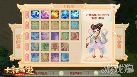 与新地图、新副本一起开启的,还有全面提升玩家战力的天演策系统。玩家们在升级角色的装备属性之余,还可以通过提高强法的 “千钧篇”、增加抗性的“载物篇”以及强化召唤兽的“御兽篇”这三个部分来提升修炼点数。