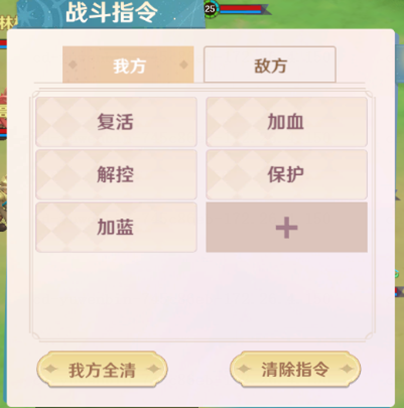 下达的指令可以清除,分为全清和单个指令清楚:敌方全清和我方全清,和清除指令。